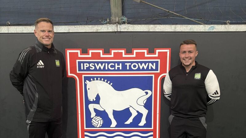 Coerver Business Development Manager Luke Noonan with Scott Wright who is Director of Coerver England and Wales on his recent visit to Ipswich Football Club.