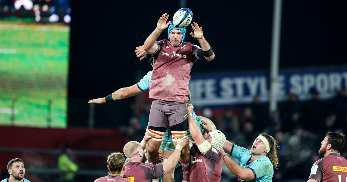 Munster's Tadhg Beirne wins a lineout against Castres Olympique at Thomond Park. Picture: INPHO/Nick Elliott