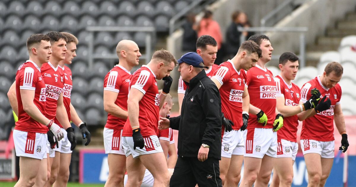 Cork manager John Cleary and his team before the 2024 game with Cavan at SuperValu Páirc Uí Chaoimh. Picture: Eddie O'Hare