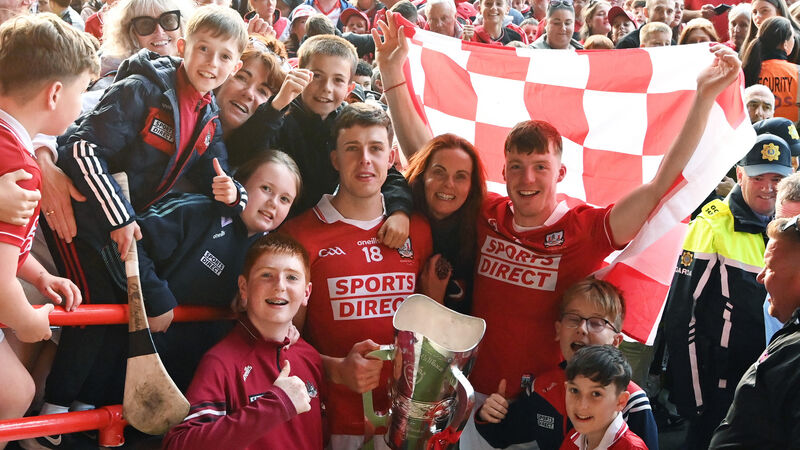 Robert and Eoin Downey with supporters after defeating Limerick in the 2025 Munster hurling final last summer. Picture: Eddie O'Hare