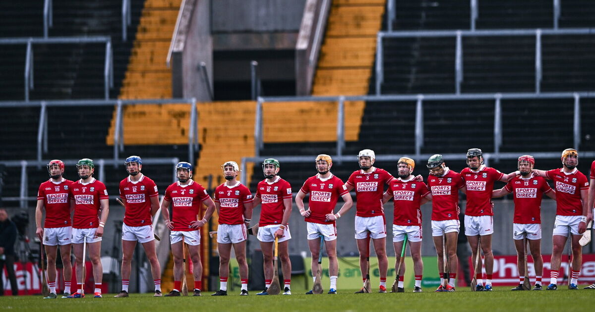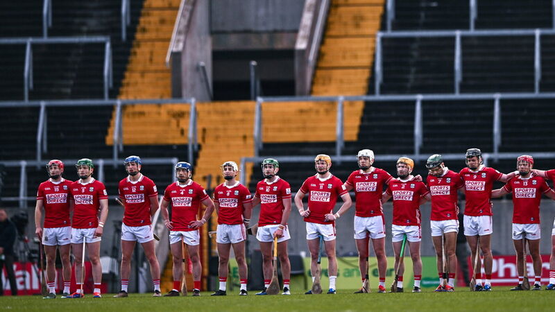 The Cork players stand for Amhrán na bhFiann before the win over Waterford at SuperValu Páirc Uí Chaoimh. Picture: Ben McShane/Sportsfile