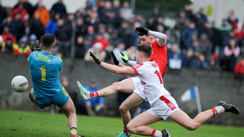 The Louth player saw his kick well saved by Micheál Aodh Martin diving to his right only for Burns to react quickest to the rebound and fist in a crucial goal.