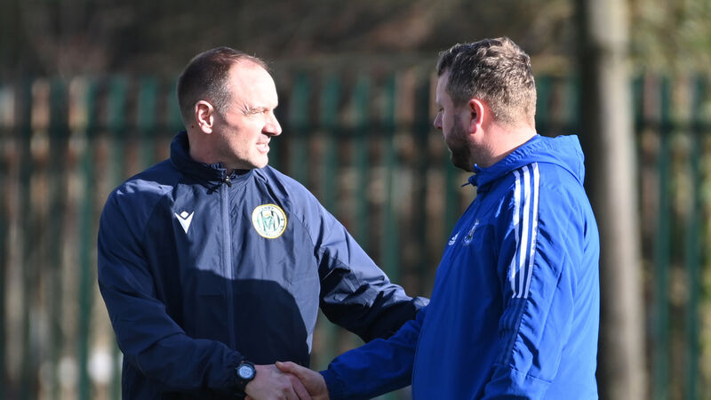 Kerry manager Colin Healy and Leeds manager Paul Fitzgerald at the Grandons Toyota Munster Senior Cup quarter-final at Leeds Park. Picture: Eddie O'Hare