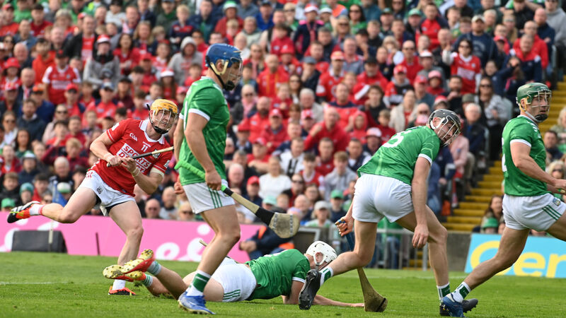 Cork's Shane Barrett hammers home his first-half goal against Limerick during the Munster SHC final at TUS Gaelic Grounds last summer. Picture: Eddie O'Hare