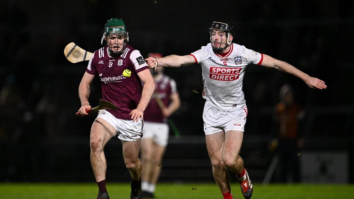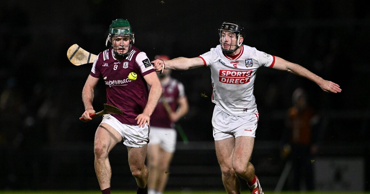 Gavin Lee of Galway is tackled by Eoin Downey of Cork during the Allianz Hurling League Division 1A match between Galway and Cork at Pearse Stadium in Galway. Picture: Ben McShane/Sportsfile