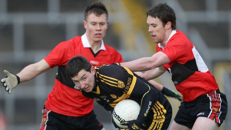 Dr Crokes' Daithi Casey under pressure from Niall Daly and Sean Kiely of UCC during the AIB Munster Club Senior Football Championship Final, Fitzgerald Stadium, Killarney in 2011. Picutre: ©INPHO/Cathal Noonan