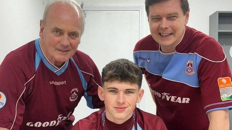 LEGACY: Kai O’Neill with his father Davin and grandfather Paddy when he signed for Cobh Ramblers.