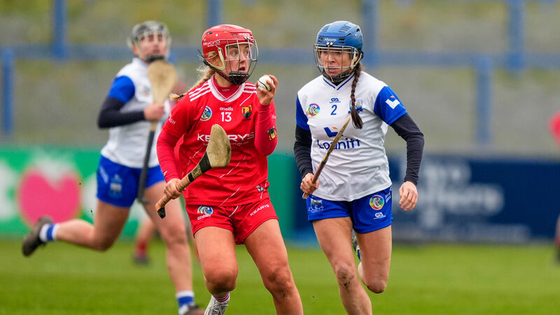 Hayley Ryan of Cork and Vikki Falconer of Waterford in action on Saturday. Picture: INPHO/James Lawlor