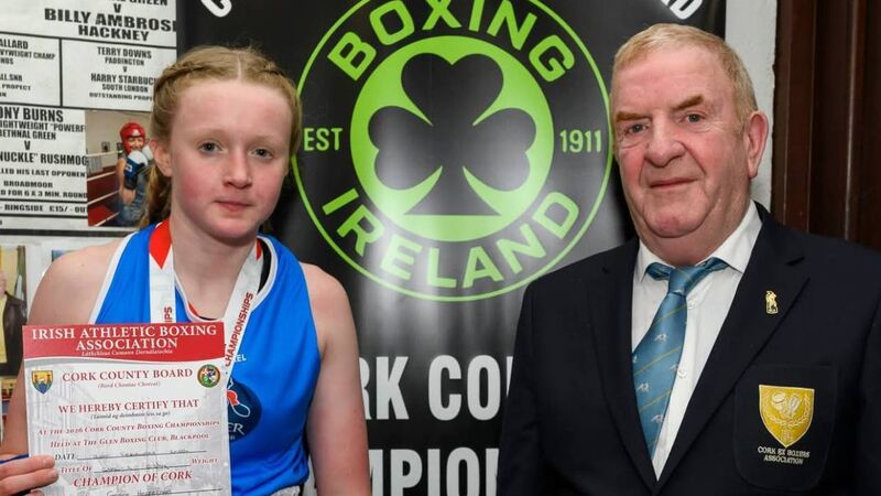 Cork Boxing: Grace Heffernan, Togher Boxing Club receives her county title medal and certificate from JJ Murphy, Chairman of the Cork Ex Boxers Association.