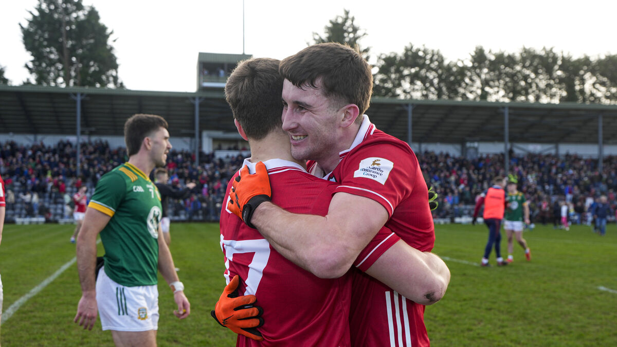 Chris Óg Jones of Cork and Jacob O'Driscoll of Cork after the win over Meath. Picture: ©Inpho/James Lawlor
