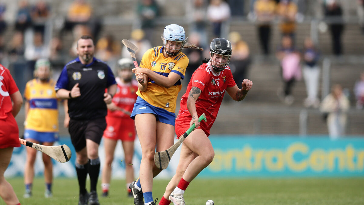 Clare's Caoimhe Cahill and Ashling Thompson of Cork in action during last year's Munster Senior Camogie Championship game at Zimmer Biomet Páirc Chíosóg. Picture: Inpho/Tom Maher