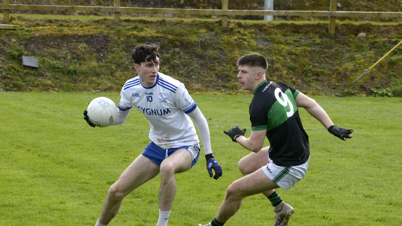 Cill na Martra's Jason Mac Carthaigh takes on Nemo's Luke Horgan. Picture: Denis Boyle