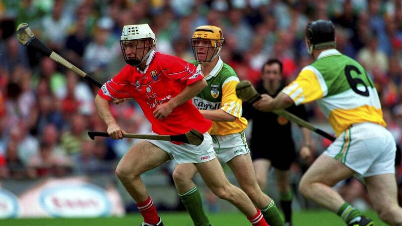 MEMORABLE: Timmy McCarthy, Cork, in action against Niall Claffey and Joe Errity (6), Offaly, in the 2000 All-Ireland hurling semi-final at Croke Park. Picture: RayMcManus/SPORTSFILE