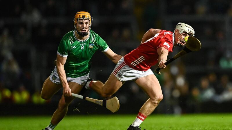 Tommy O'Connell of Cork is tackled by Adam English of Limerick during the Allianz Hurling League Division 1A match between Limerick and Cork at TUS Gaelic Grounds in Limerick. Picture: Tom Beary/Sportsfile