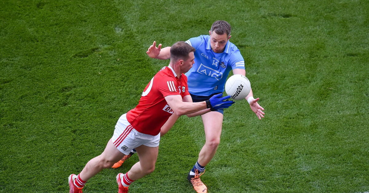 Cian Kiely of Cork in action against Dean Rock of Dublin in 2022. Picture: Daire Brennan/Sportsfile