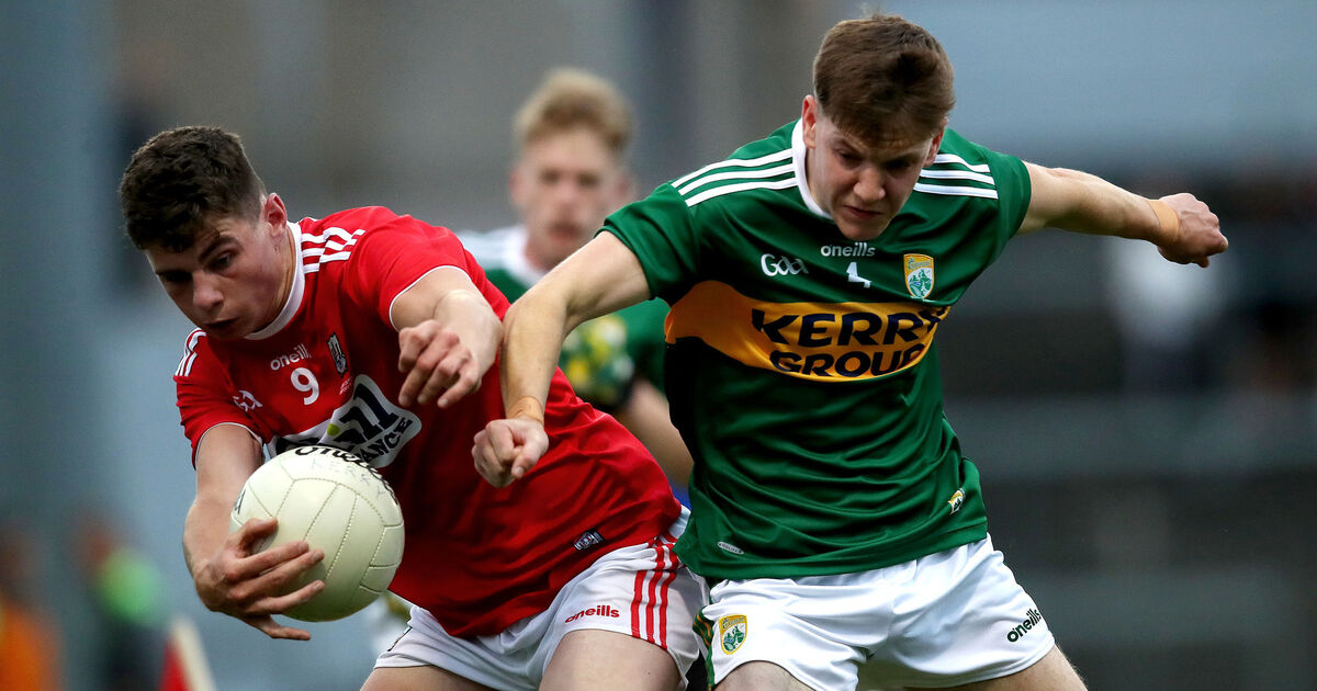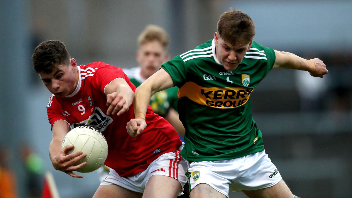 Cork's Daniel O'Connell is tackled by Michael Potts of Kerry in an U20 game in 2019. Picture: INPHO/Bryan Keane