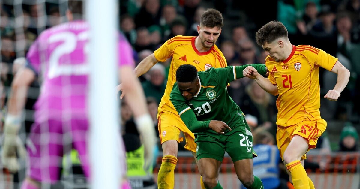Subs: Harvey Vale for Molumby (61); James Abankwah for Coleman (61), Mark Travers for Kelleher (61), Mohammad Lawal for Azaz (63), James Abankwah for Coleman (61), Jake O’Brien for Egan (72), Adam Idah for Parrott (72), Alan Browne for Abankwah (83), Johnny Kenny for Ogbene (84) North Macedonia: Stole Dimitrievski; Darko Churlinov; Gjoko Zajkov, Darko Velkovski, Feta Fetai, Sebastián Herrera; Tihomir Kostadinov, Isnik Alimi; Enis Bardhi, Eljif Elmas; Elmin Rastoder.