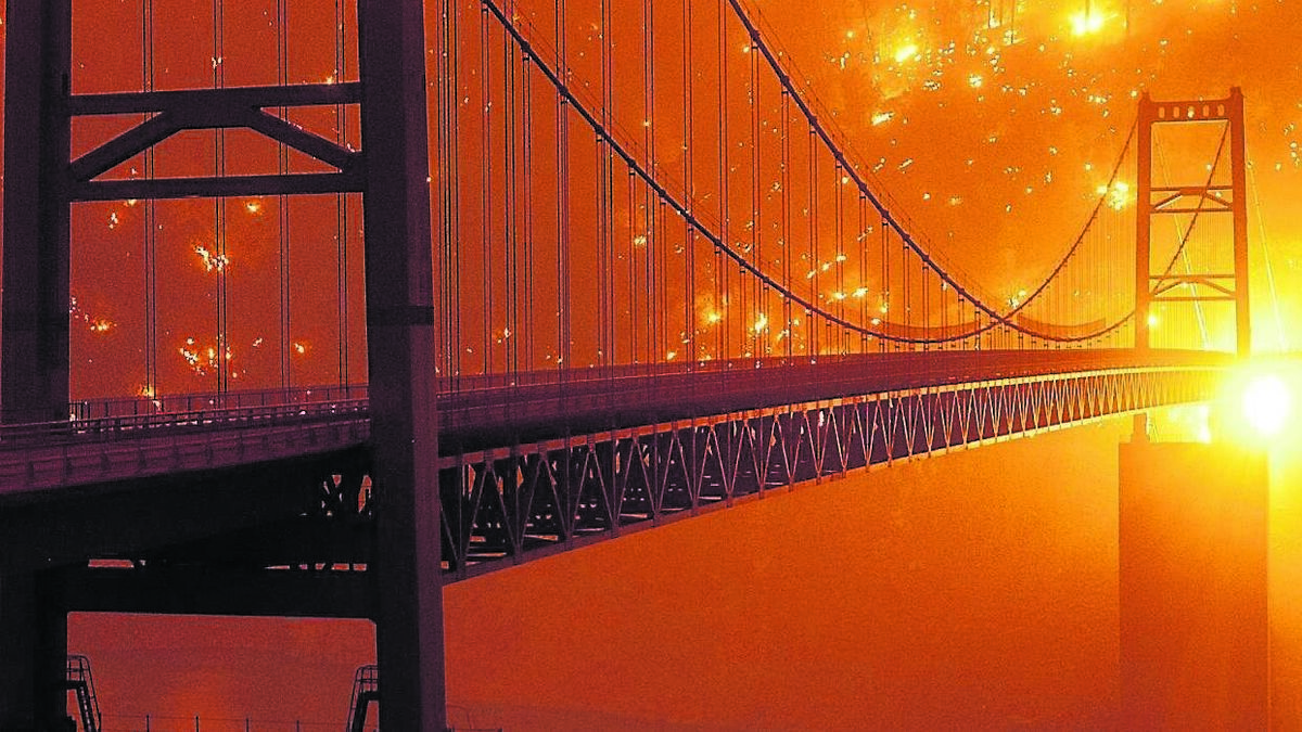 RED ALERT: Embers light up a hillside behind the Bidwell Bar Bridge as a forest fire burns in Oroville, California, last week.