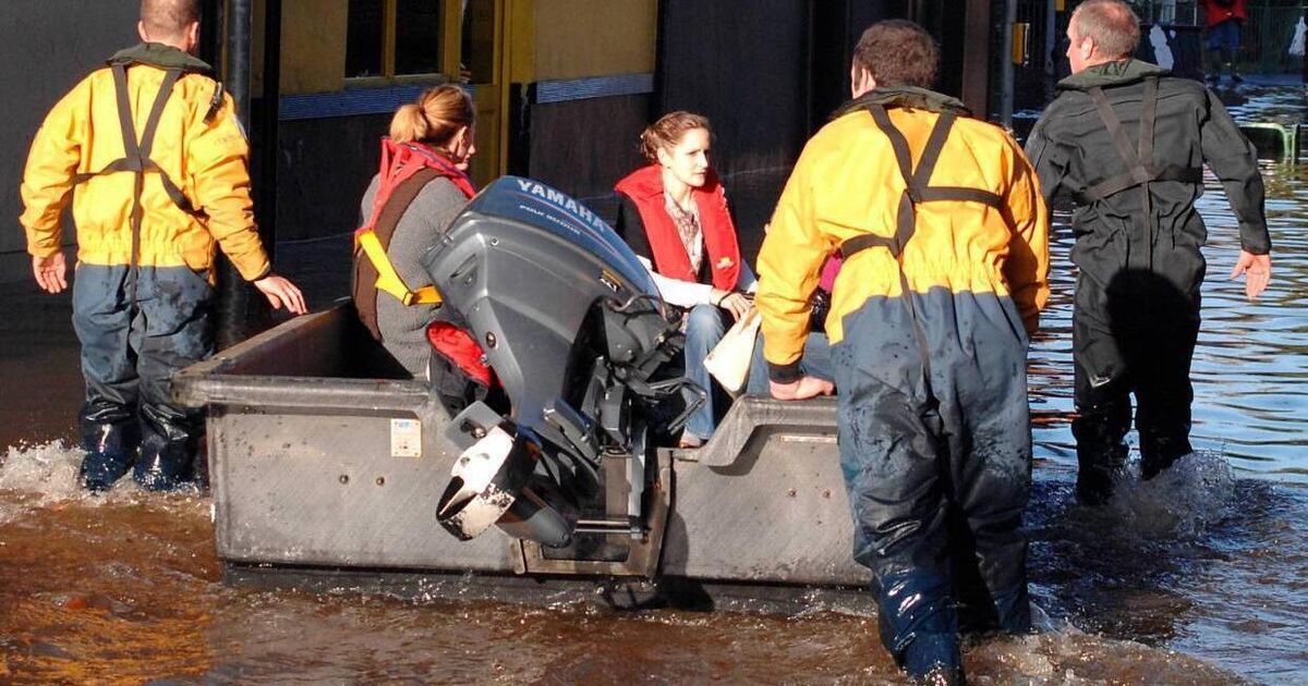 A PRESSING ISSUE: Mercy Hospital staff being taken by boat to work from Courthouse Street during the 2009 floods — an example of how extreme climate events can put huge pressure on the health service