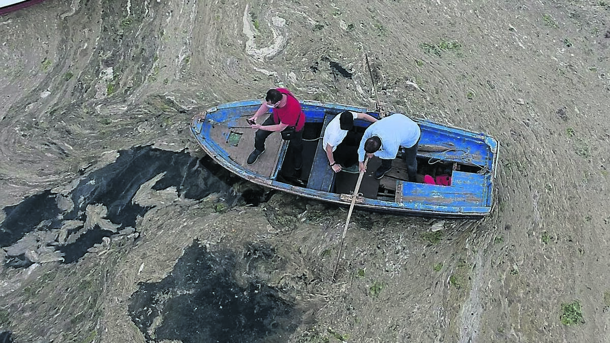 This is a natural crisis of gargantuan proportions with huge ramifications. One terrifying image showed several small fishing boats struggling to cut paths through the huge, heavy slick of sludge along the coastline to the clear sea beyond. The sludge is collecting in fishing nets and making them so heavy and difficult to handle, that they often break or are lost.