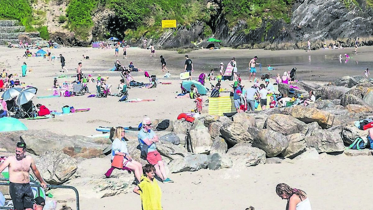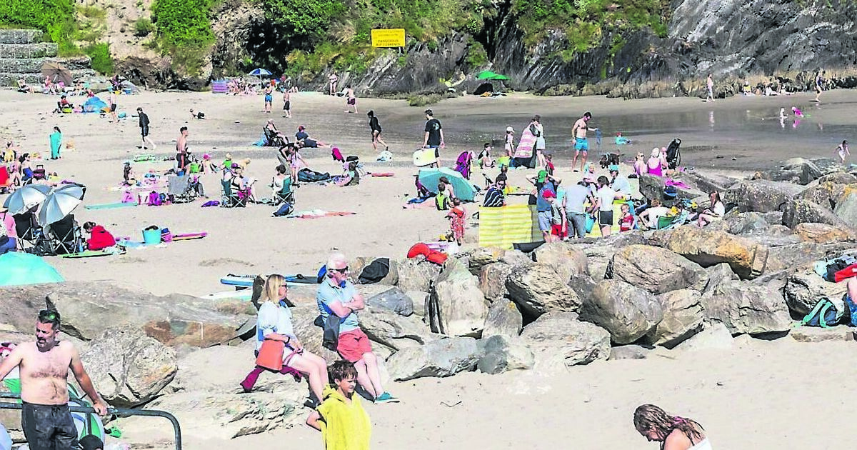 LAPPING IT UP: Crowds on The Warren Beach in Rosscarbery, Co Cork, packed with sun-seekers this week. Picture: Andy Gibson