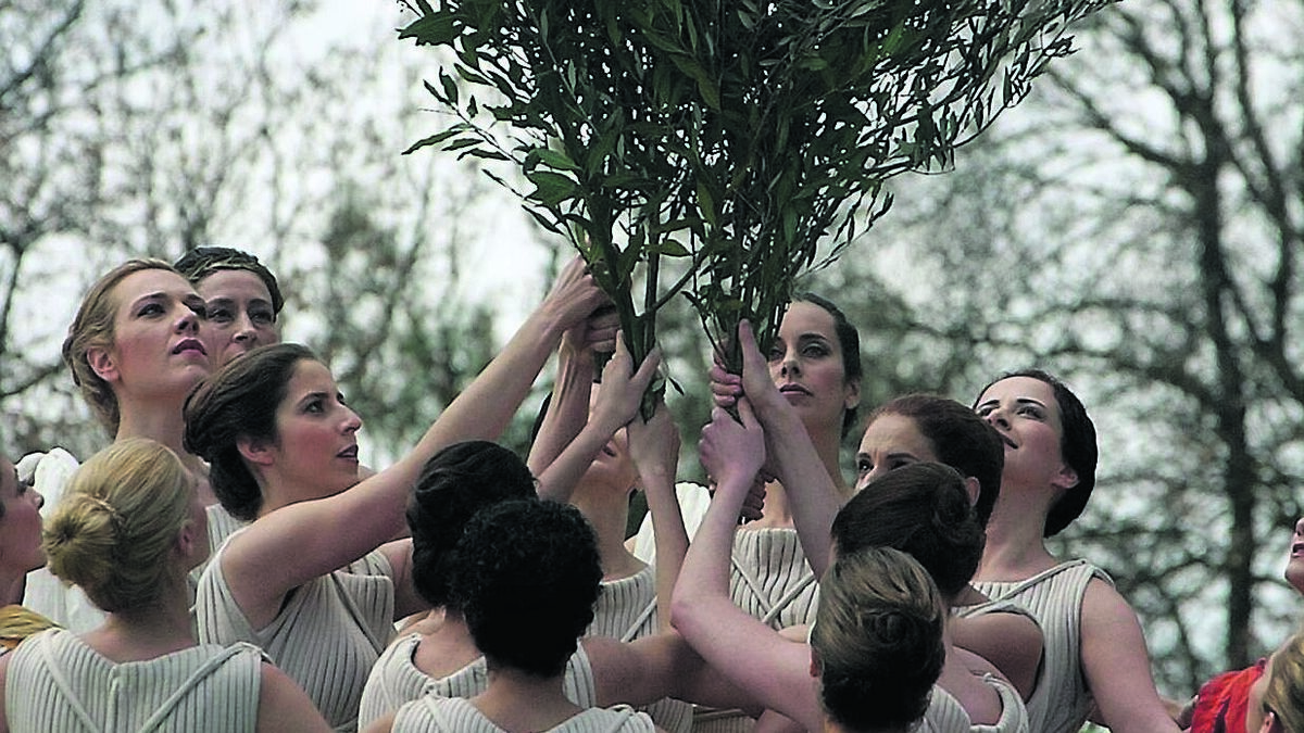 HIGHER CALLING: Greek actresses playing priestesses at the birthplace of the Olympics in Athens at the Games there in 2004