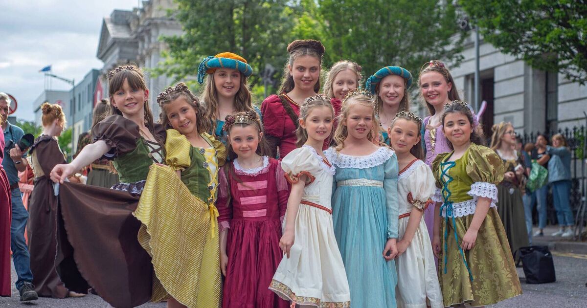 Members of the Joan Denise Moriarty School of Dance pose for photos before taking part in the Midsummer Parade on Oliver Plunkett Street as part of the Cork Midsummer Festival which runs until June 26. Image: Cian O'Regan