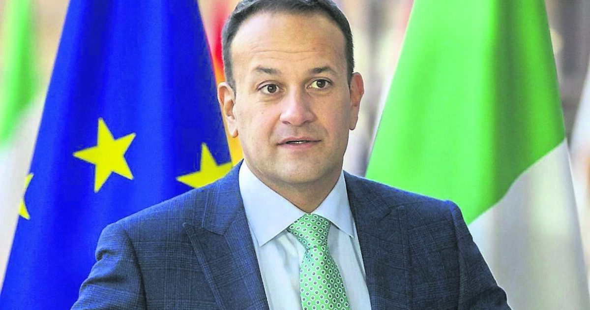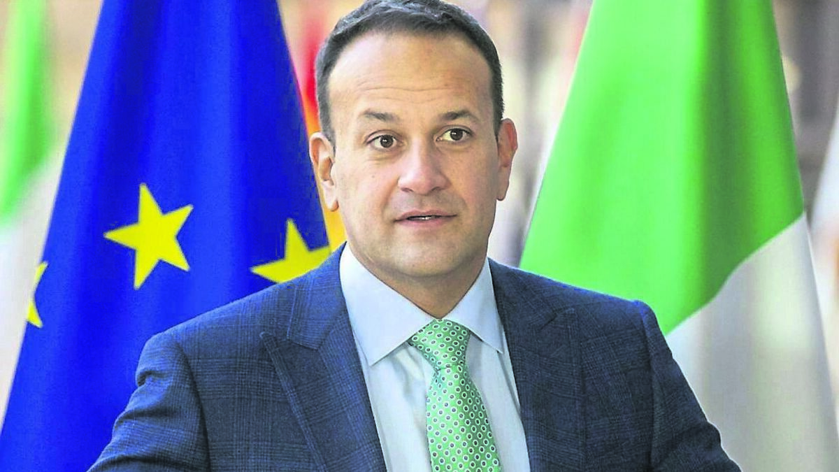 Taoiseach Leo Varadkar in front of the European and Irish flags at a European Council summit