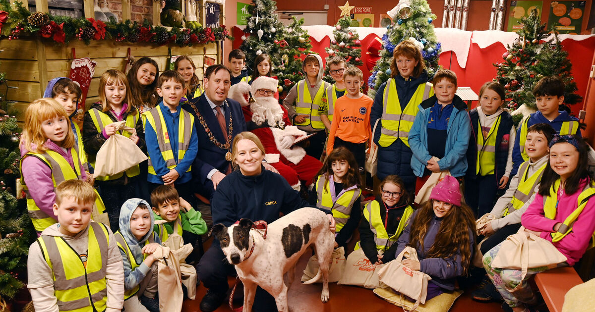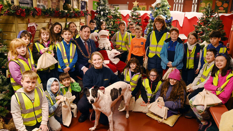 Cllr. Kieran McCarthy, Lord Mayor, and Santa pictured with children from Mary Geary's Childcare, Carrigtwohill, and Katie O'Keeffe, CSPCA, with Cuttlefish at the Christmas lights switch-on at the CSPCA, Mahon, Cork.