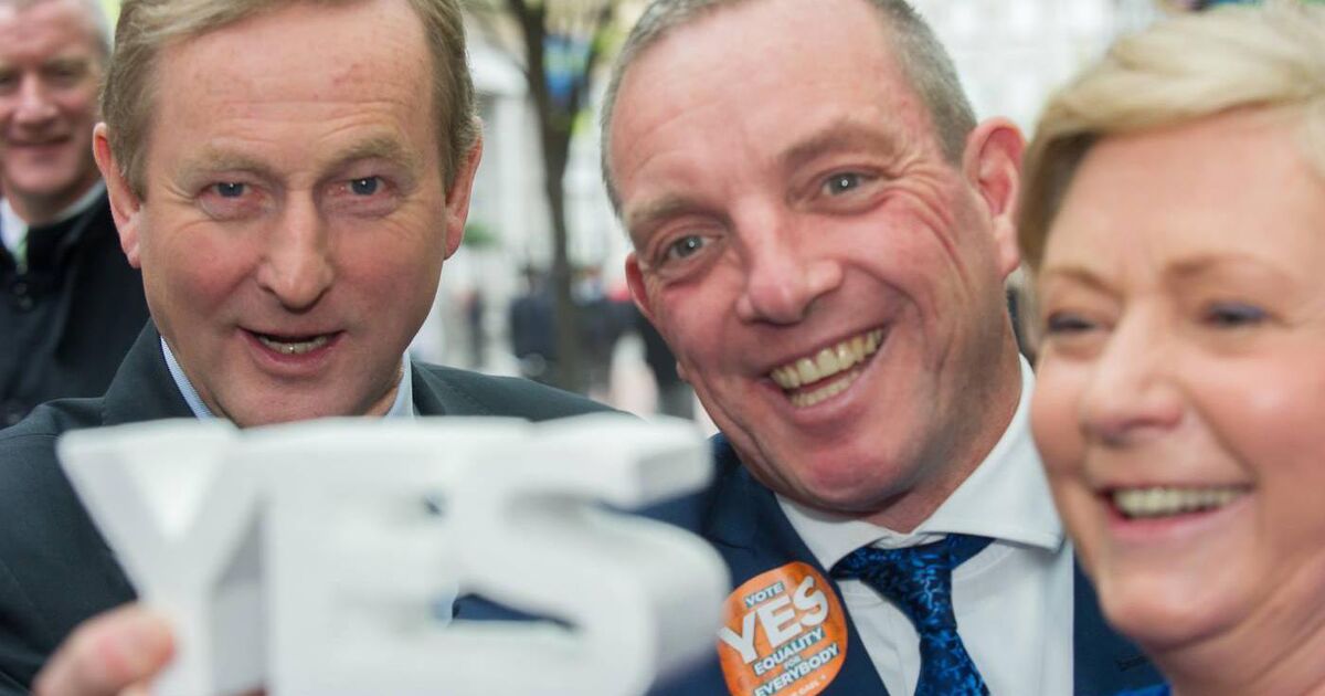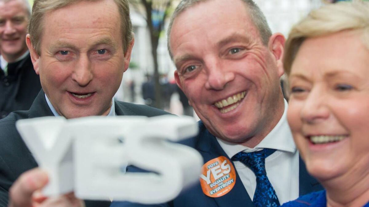 Former taoiseach, Enda Kenny launching Fine Gael's campaign calling for a Yes vote in the Marriage Equality Referendum back in 2015. He is pictured with Jerry Buttimer and Frances Fitzgerald. Photo:Barry Cronin