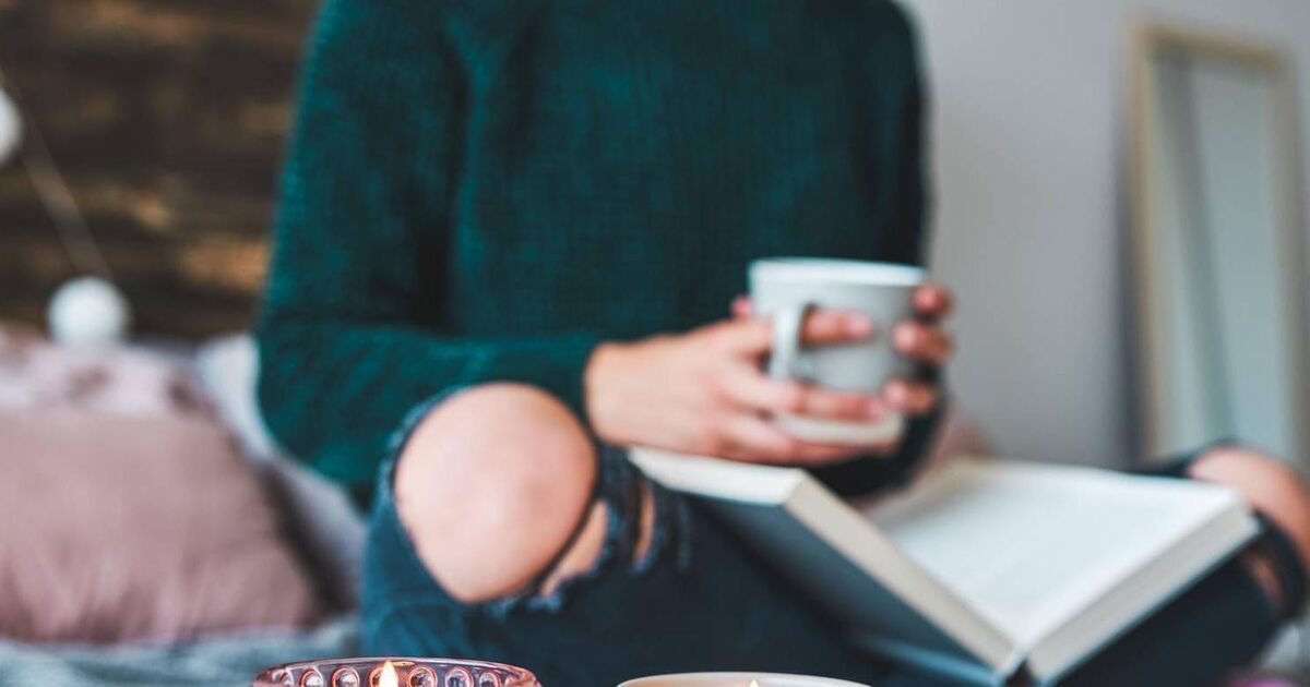 Cropped shot of an unrecognizable young woman relaxing with a book and a cup of coffee on her bed at home
