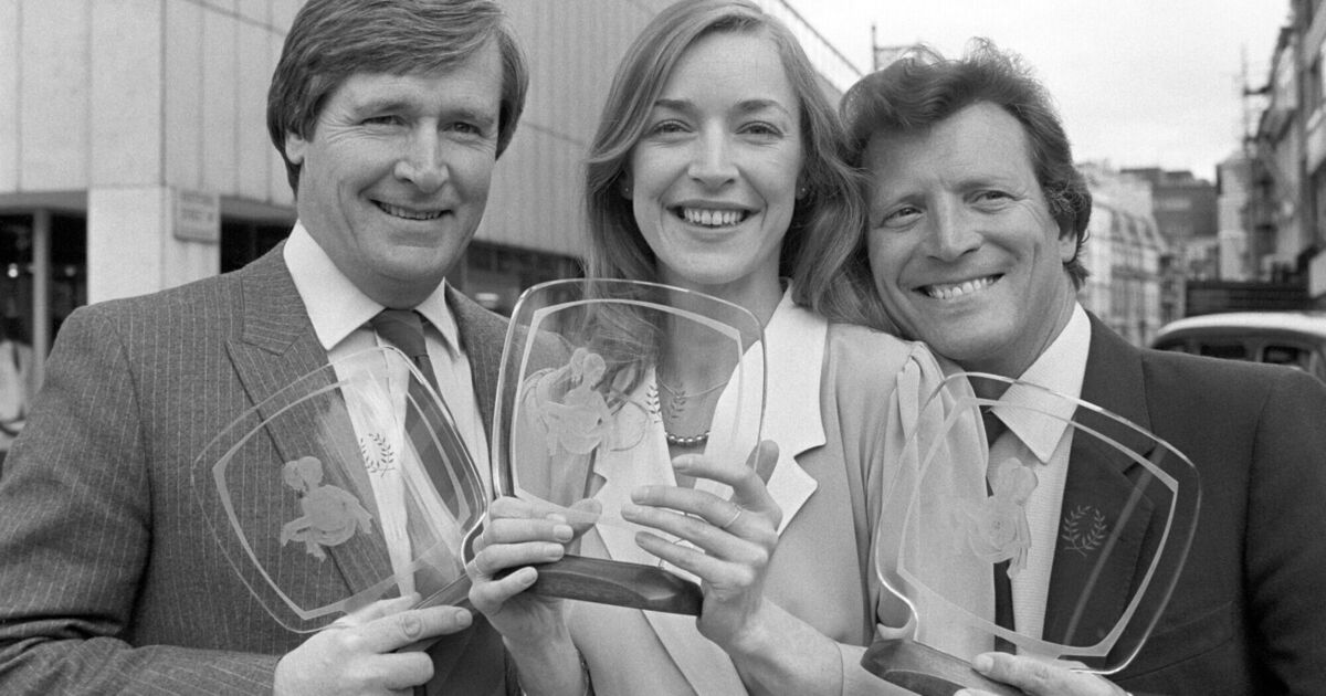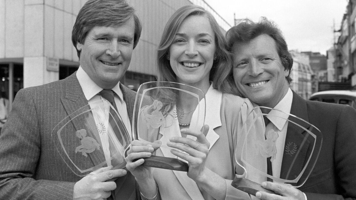 Three stars of the long-running TV series "Coronation Street" in London in 1983 with their special award, received at the PYE Television Awards at the Hilton Hotel. They are (left to right) William Roache, who plays Ken Barlow, Anne Kirkbride, who plays his wife Deidre and actor Johnny Briggs who plays Mike Baldwin. Picture: PA