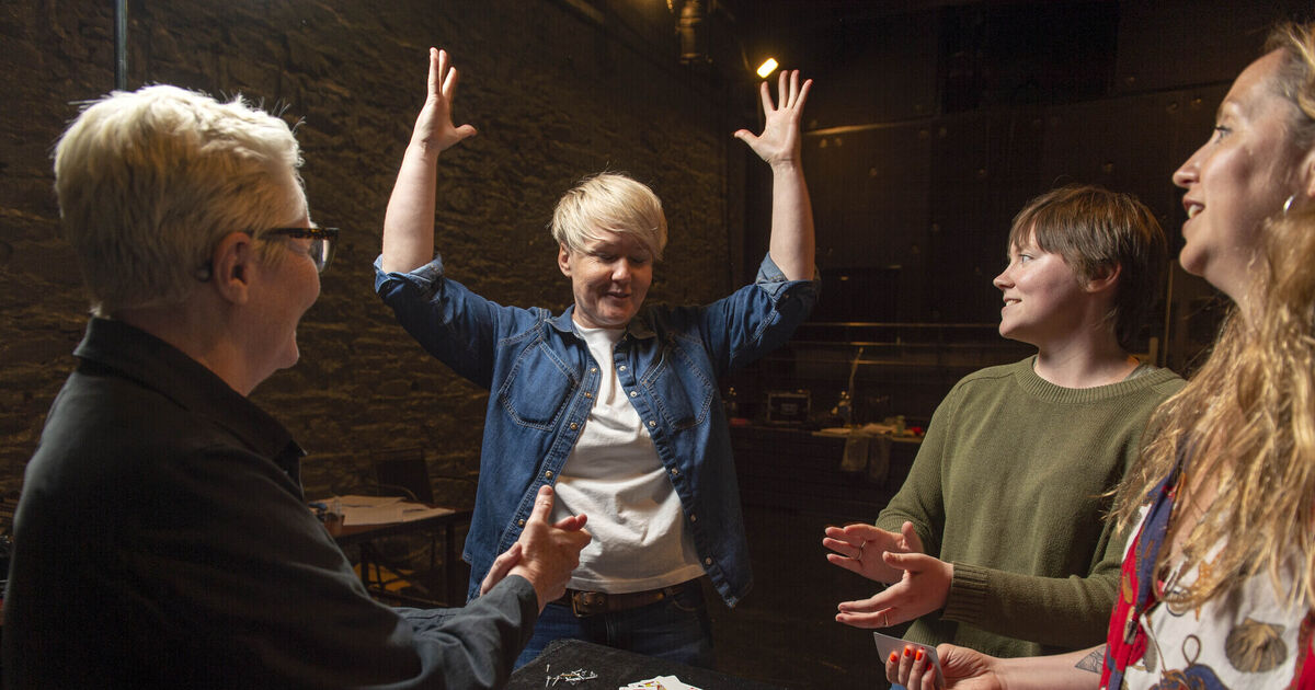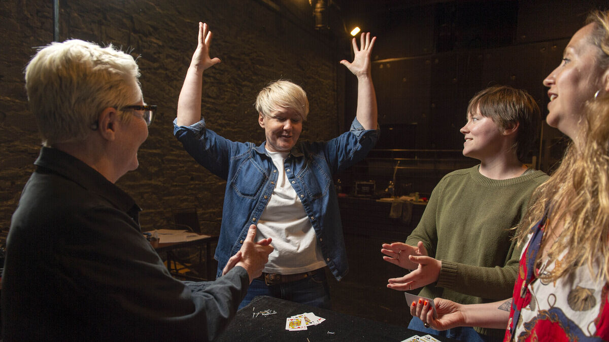 Amy Conroy, Chloe O'Reilly, Liz Fitzgibbon & Gina Moxley in rehearsal for Corcadorca’s ‘Guests of the Nation’. Picture: Michael Mac Sweeney/Provision