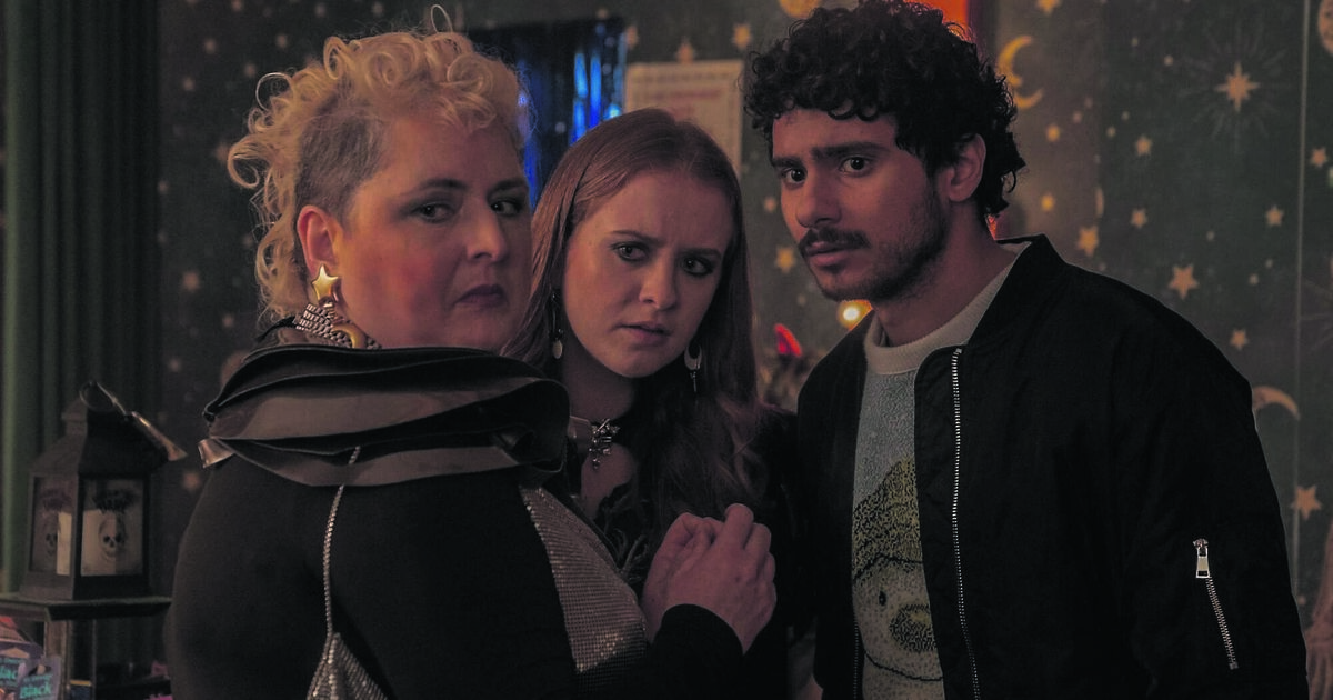 From left, Cork actors Siobhán McSweeney and Máiréad Tyers, and Bilal Hasna, in the second series of Extraordinary, which landed on Disney+ on Wednesday