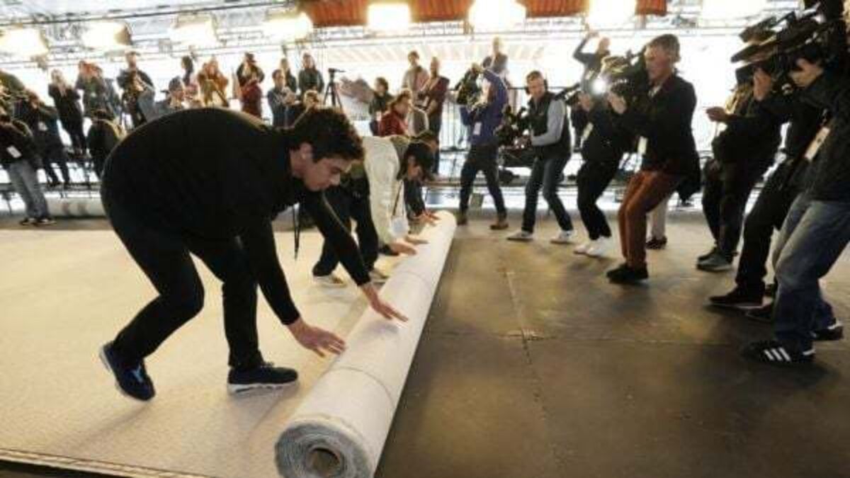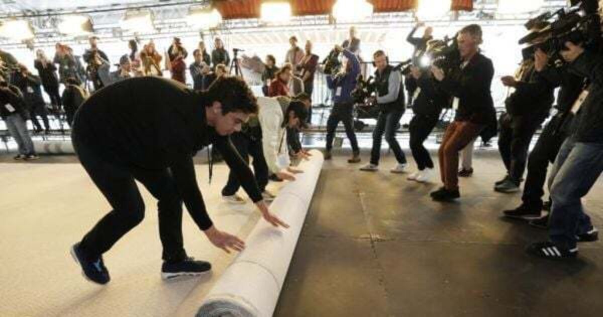 Kimmel praised the production workers as they rolled out two sections of the carpet, joking: “This has got to be the dumbest thing you guys have ever gotten up at 7.30 in the morning for.”