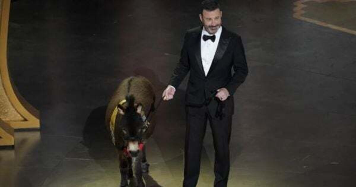 Jimmy Kimmel was joined on stage at the Oscars by an “emotional support donkey” bearing the same name as the four-legged star of The Banshees of Inisherin.