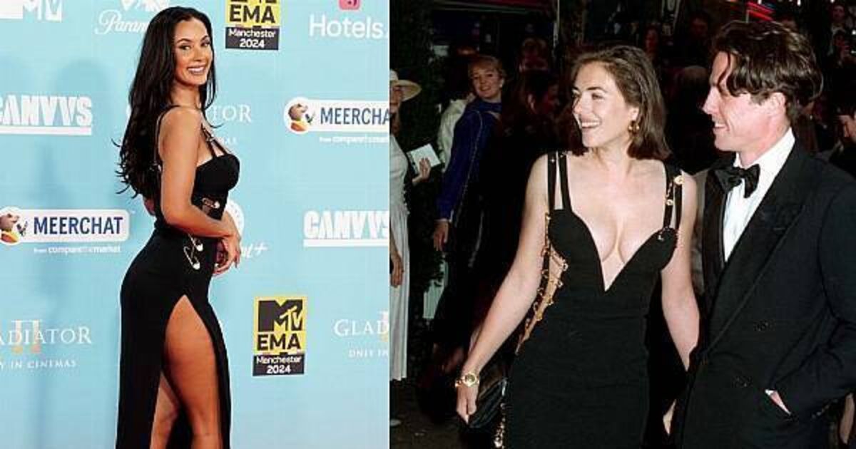 Maya Jama channelled Elizabeth Hurley’s iconic, safety-pin dress at the MTV Europe Music Awards (EMAs) 2024 in Manchester.