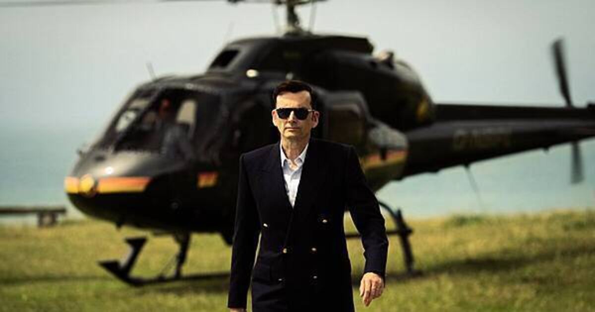 David Tennant strides away from a helicopter in first-look pictures from the upcoming second series of Rivals.
