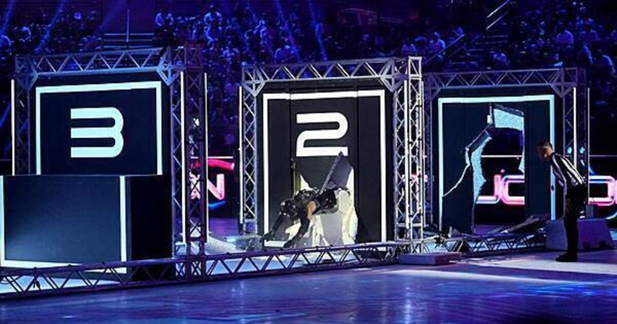 Two contenders will take on one Gladiator – and the first person to make it through the barriers and hit the final button will be the winner.