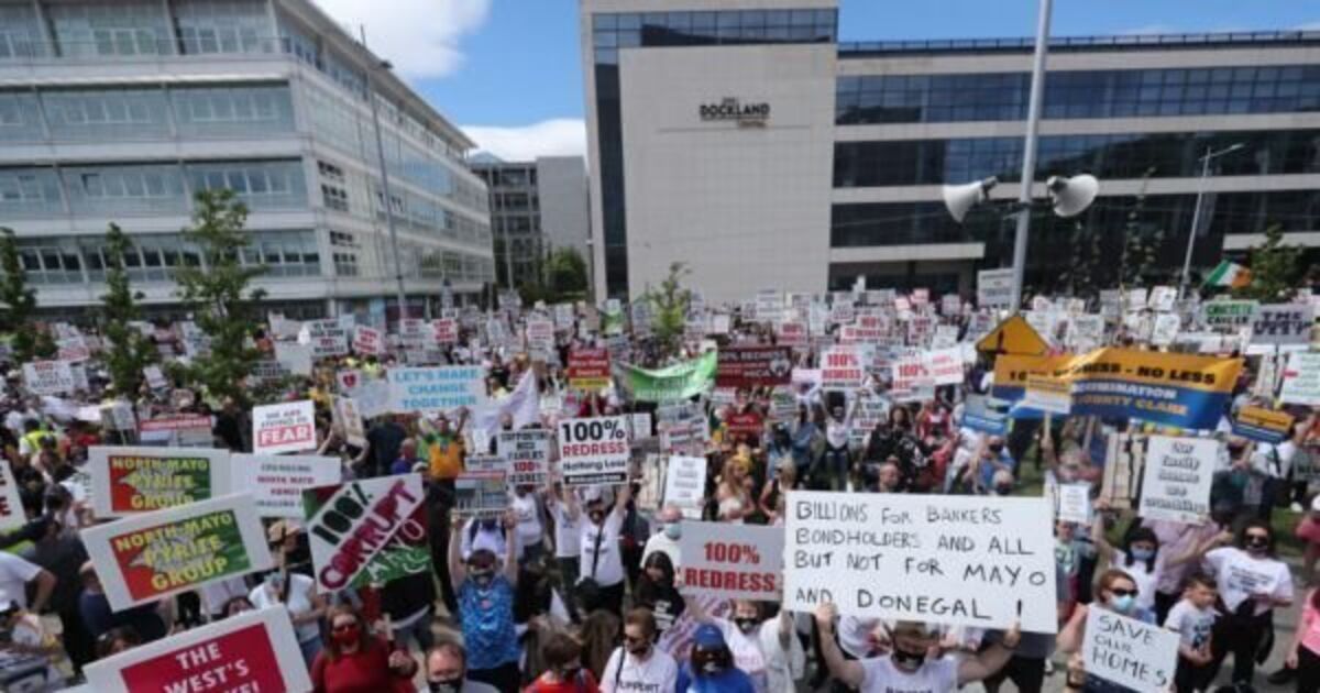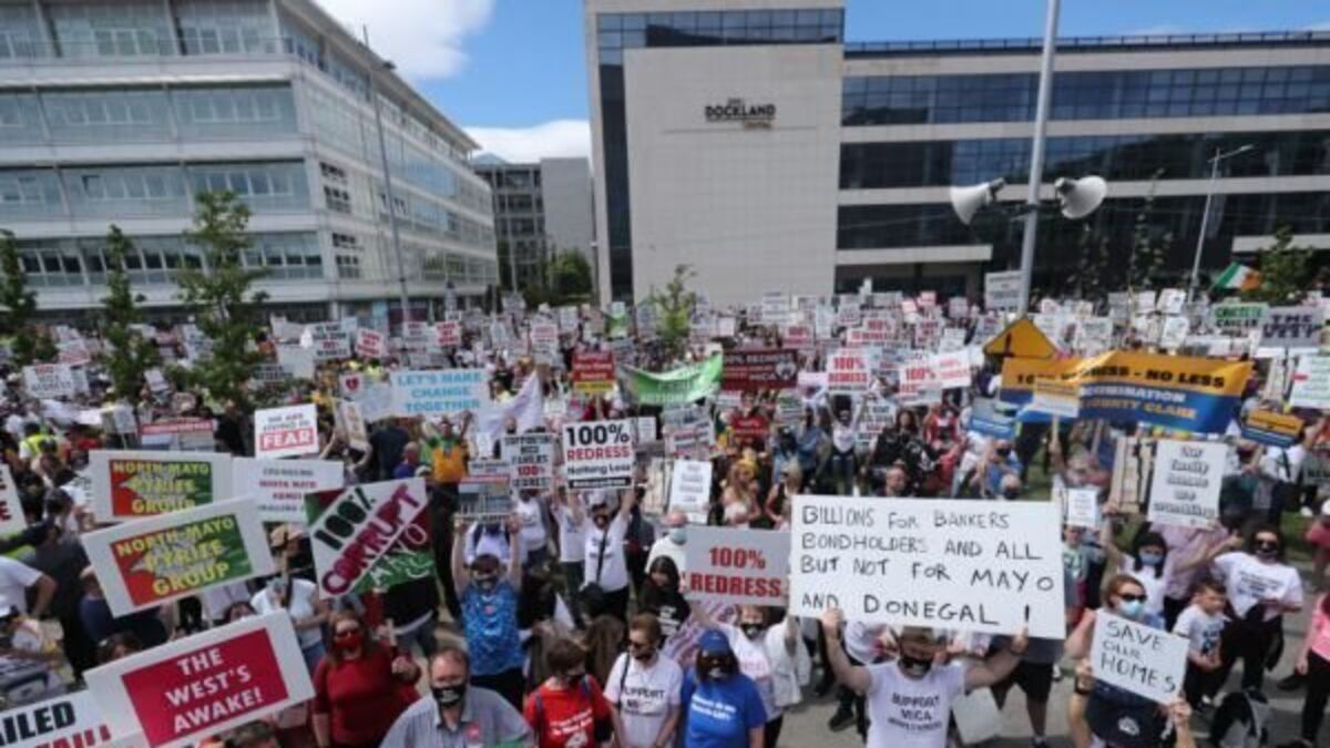 Families living in crumbling homes were joined by supporters as they travelled from counties including Donegal, Mayo, Sligo and Clare to take part in the major protest.