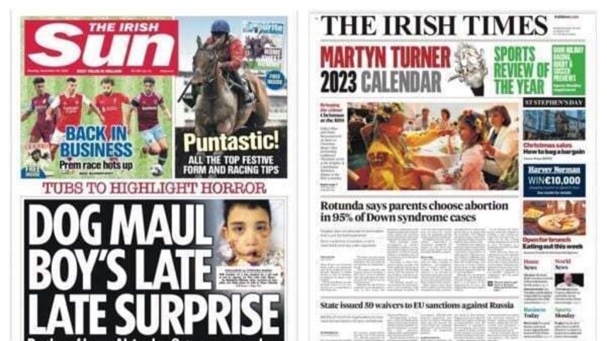 A €1.4 million Government spend on social media adverts in 2022, and reported new leads in the Sophie Toscan du Plantier murder case are among the topics that feature on St Stephen's Day front pages.