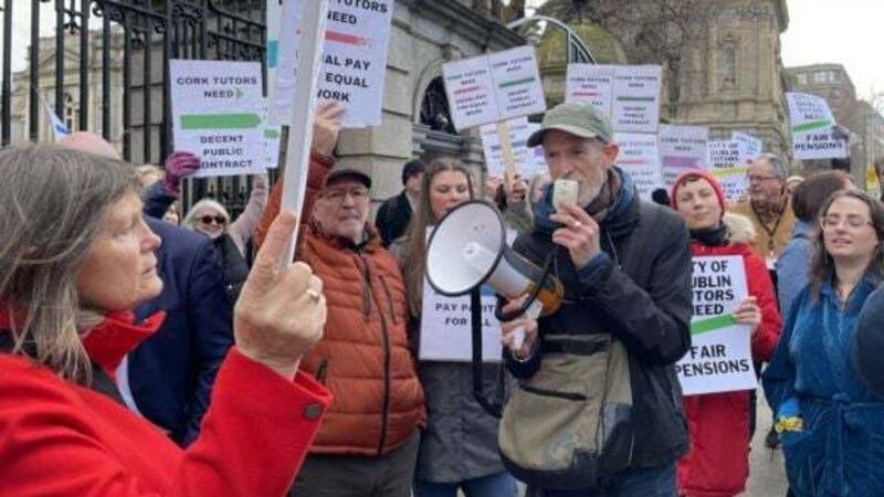 Tutors gather at Leinster House to protest against ‘ridiculous’ work conditions