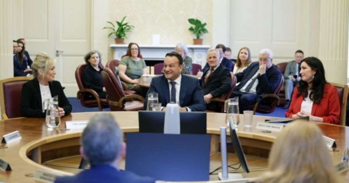 The Taoiseach was greeted by the North’s new First Minister Michelle O’Neill and deputy First Minister Emma Little-Pengelly at Stormont Castle on Monday, and held a meeting before Mr Varadkar met with the rest of the newly-formed Executive.