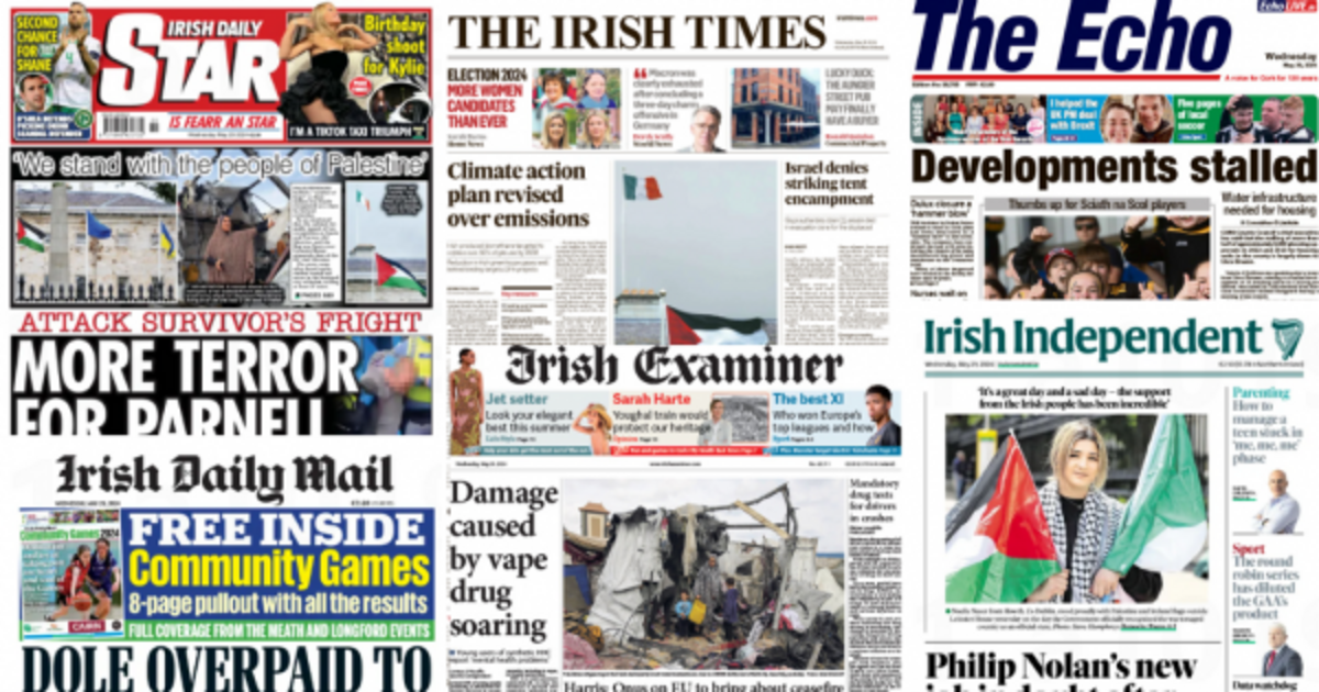 Ireland's recognition of the state of Palestine, questions over Professor Philip Nolan's new role, and payments to asylum seekers are some of the stories which lead the national papers on Wednesday.