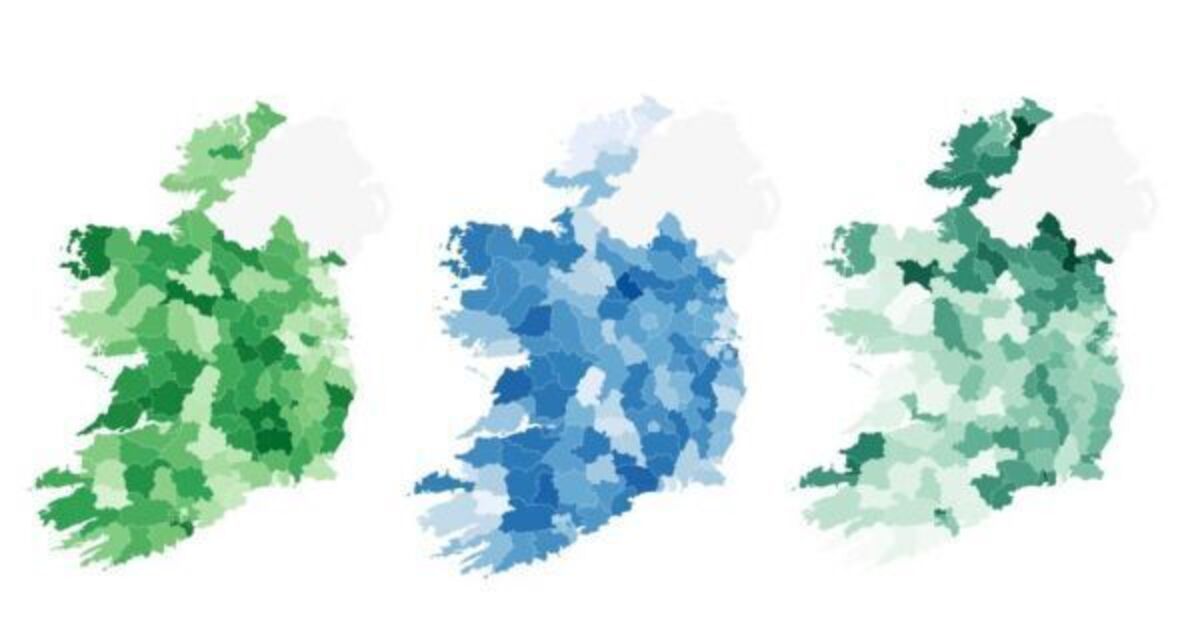 The interactive maps below show where the parties were strongest in these elections, with the spread of first-preference votes varying across the country and within counties. The tooltip shows the vote share of the party and the change from the last election in 2019.