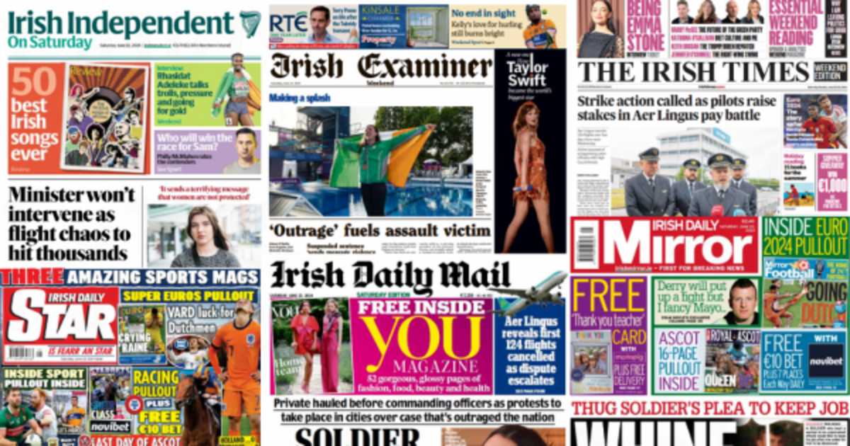 The looming strike action by Aer Lingus pilots, and reaction to the sentencing of a member of the Defence Forces for an assault on a young woman in Limerick fill Saturday's front pages.