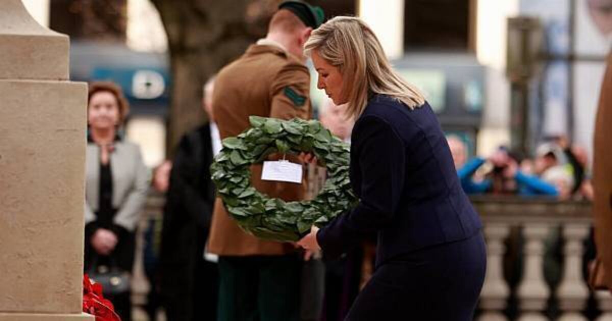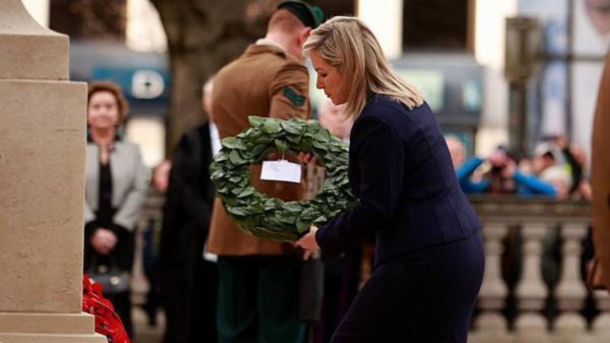 Stormont’s First Minister Michelle O’Neill has participated in the Remembrance Sunday ceremony at Belfast City Hall – the first time a senior Sinn Féin figure has taken part in such an event in Northern Ireland.