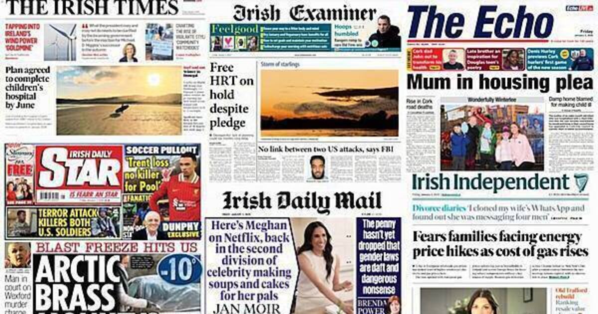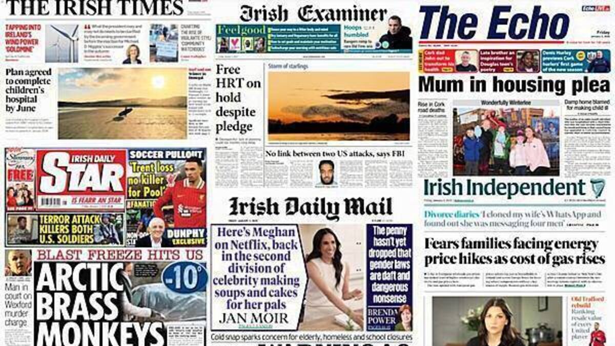 The ice-cold weather conditions also feature on the front page of the Irish Daily Mail, which reports on Meghan Markle's Netflix documentary as well.