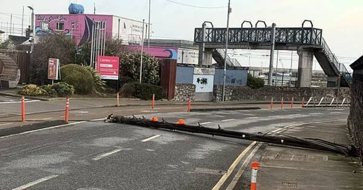 Some structures have been damaged around Dublin, with reports a lamp post fell onto a house in Ringsend.