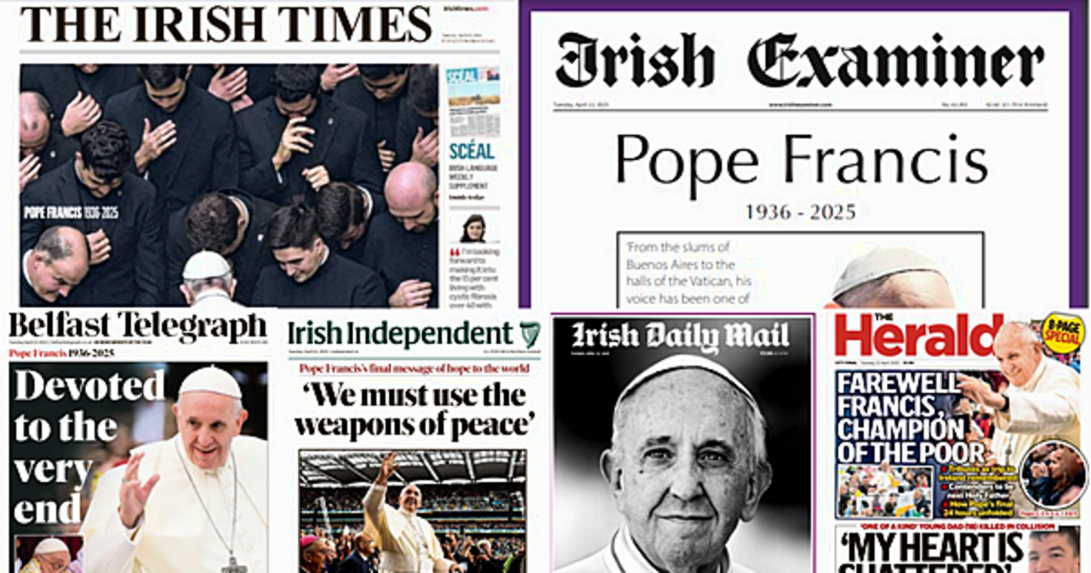 The Irish Examiner, Belfast Telegraph, Irish Daily Mirror, Irish Daily Star, Irish Daily Mail, and Irish Independent all dedicate their entire front pages to Pope Francis's death.